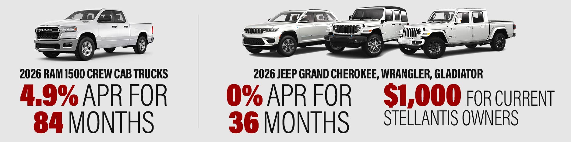 Jeep has many heavy hitters that are fit for the city and the trails. Our best sellers by this brand are the Jeep Wrangler, Wagoneer, Compass, Cherokee, Grand Cherokee, and Grand Cherokee L. What's great about the Grand Cherokee and Wrangler is that they both have hybrid models. You can get charged up with the Wrangler 4xe Plug-In Hybrid or a new Grand Cherokee 4xe Plug-In Hybrid.