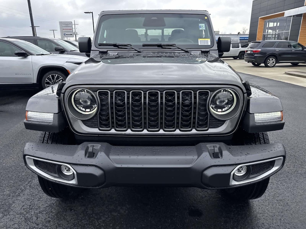 Finished with LED headlamps and fog lamps, 18" machined gray wheels wrapped in all‑season tires, plus safety tech like ParkView® backup camera and trailer sway control, this Gladiator Sahara proves you really can have it all. 😎🛡️