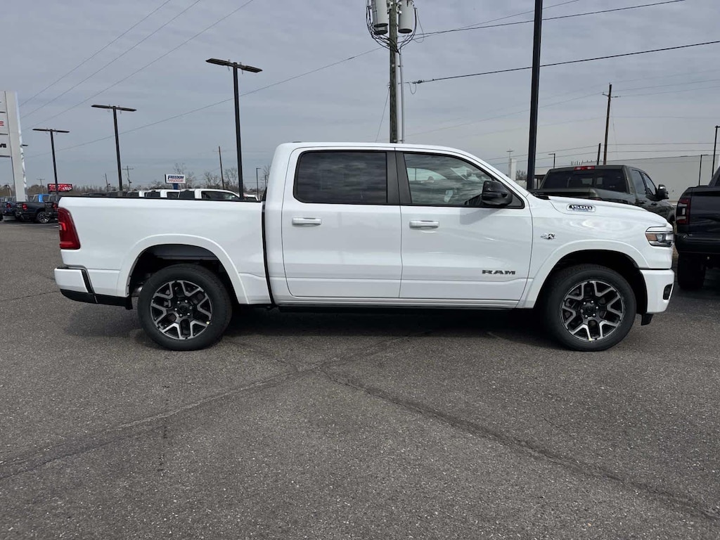 🔥 2026 Ram 1500 Laramie Crew Cab 4x4 finished in clean Bright White Clear‑Coat pairs classic V8 muscle with refined luxury, powered by the legendary 5.7L HEMI® V8 eTorque engine.