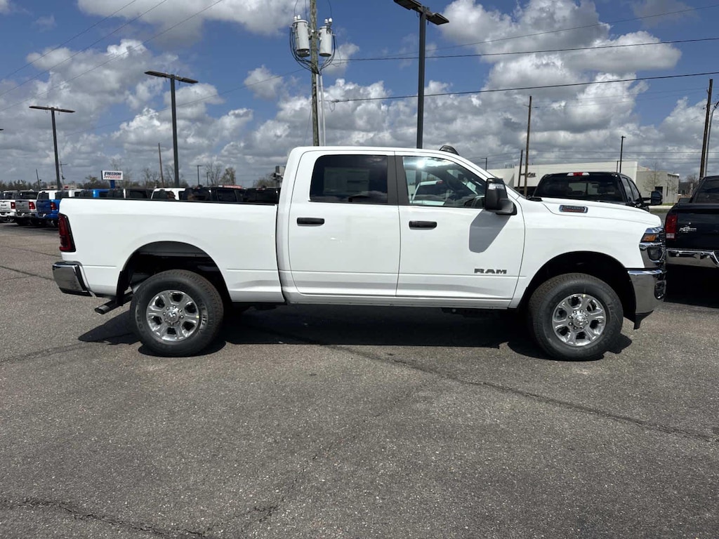 🔥 The bold and capable 2026 RAM 2500 Big Horn Crew Cab 4x4 in Bright White delivers heavy‑duty strength with its 6.4L HEMI V8 and a full suite of advanced safety and towing tech.
